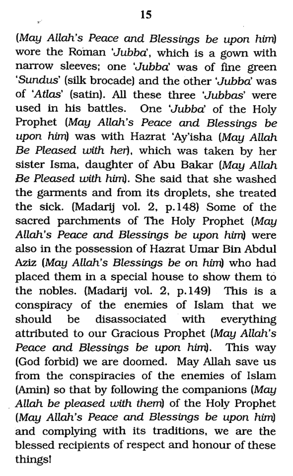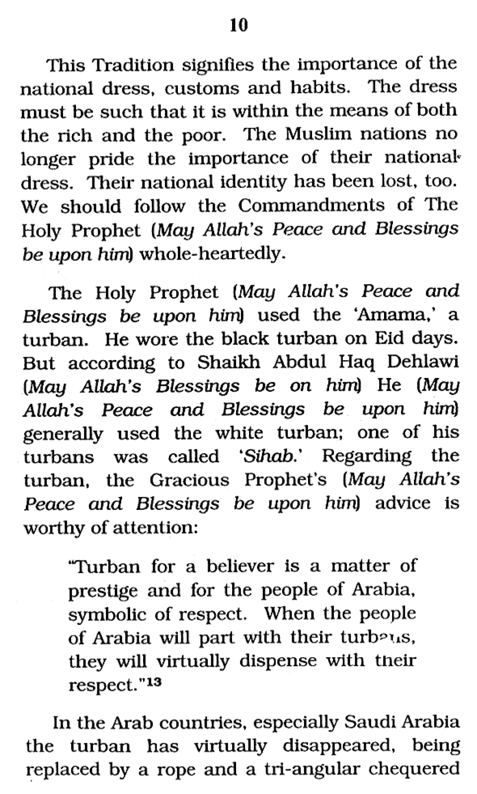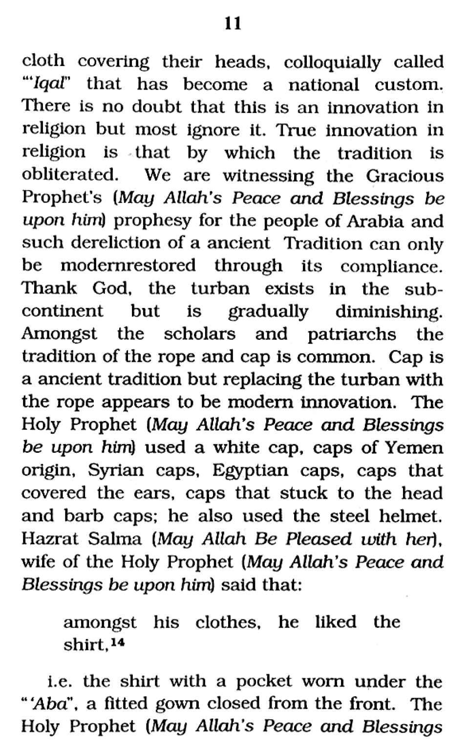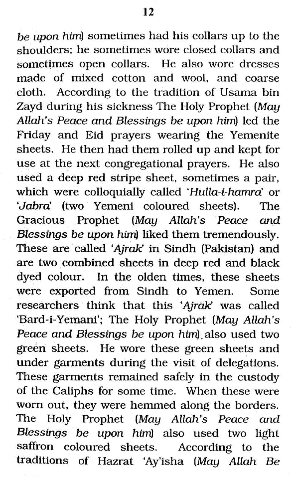 Attire of the Holy Prophet