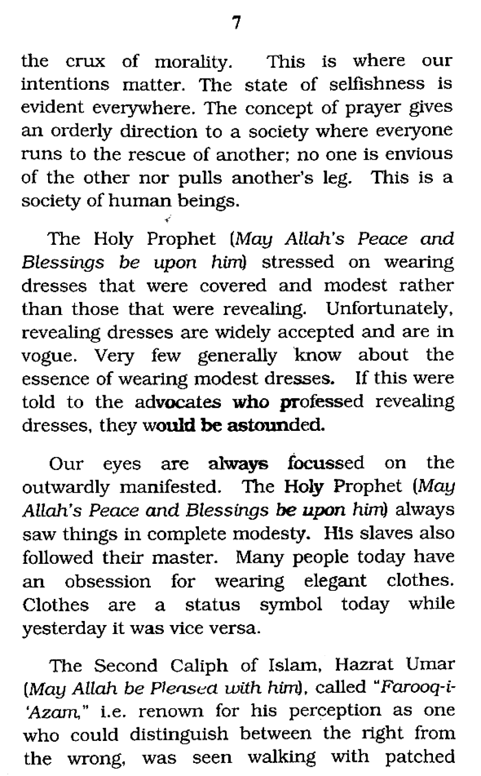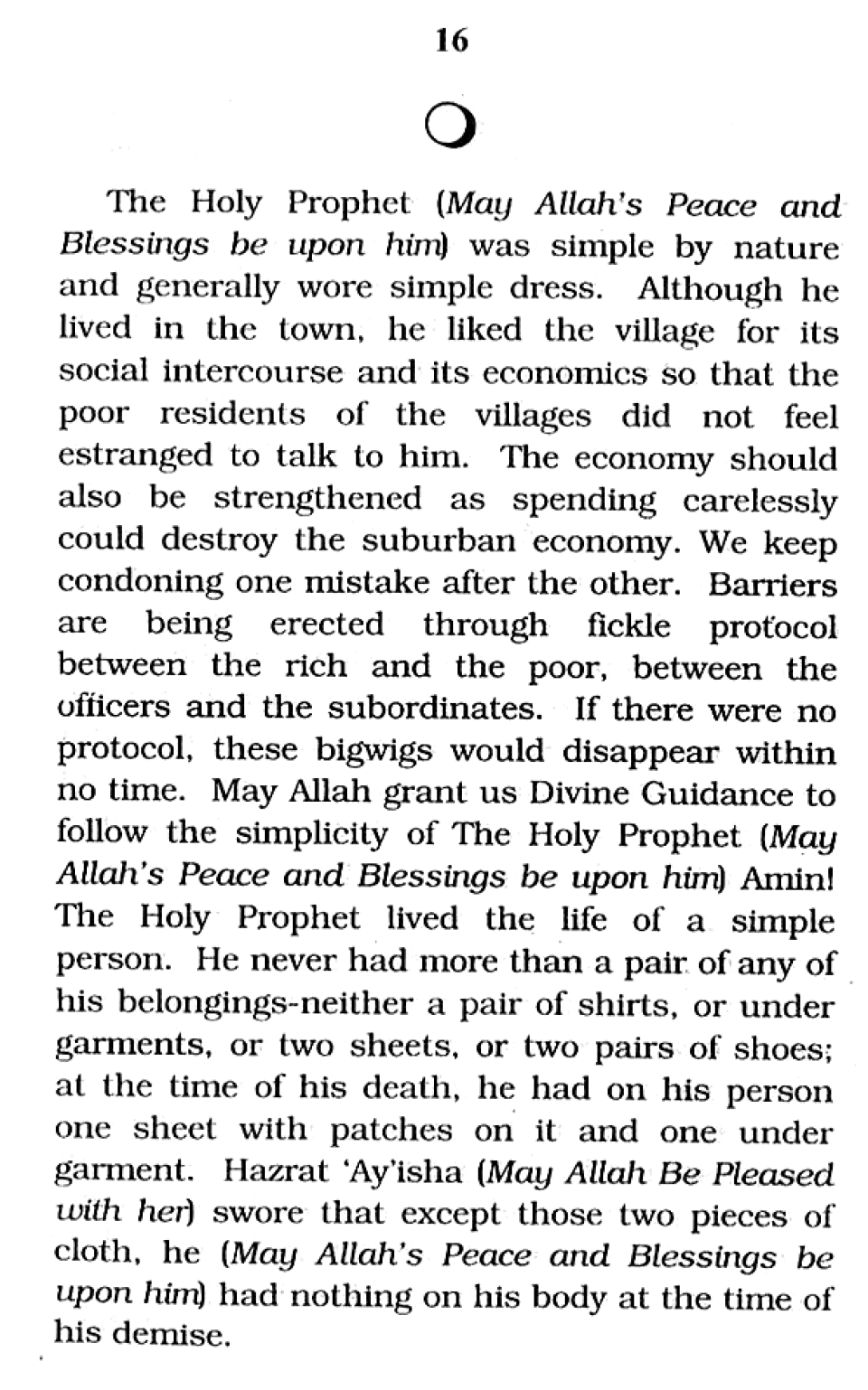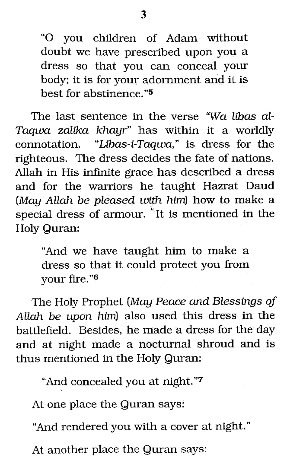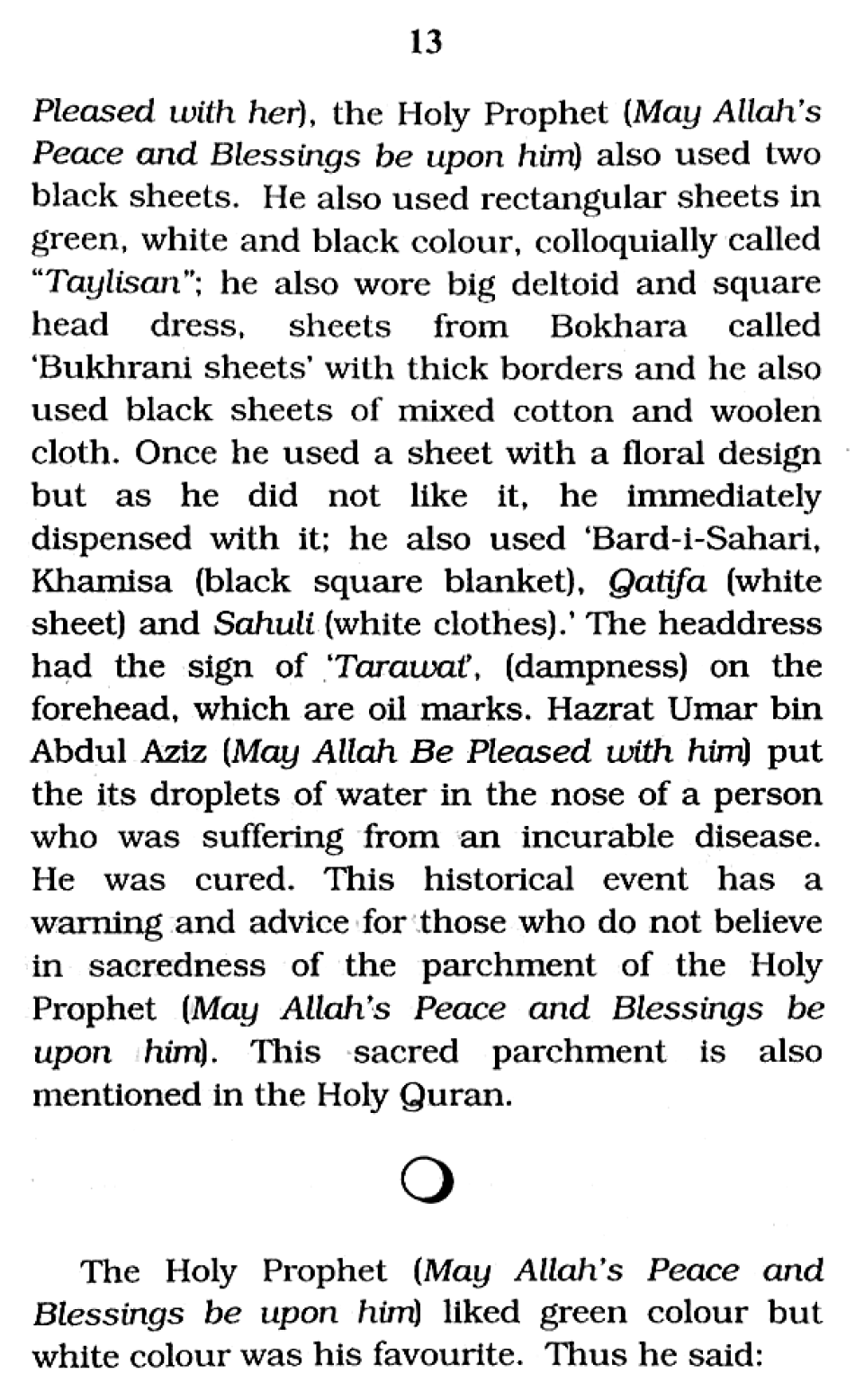 Attire of the Holy Prophet