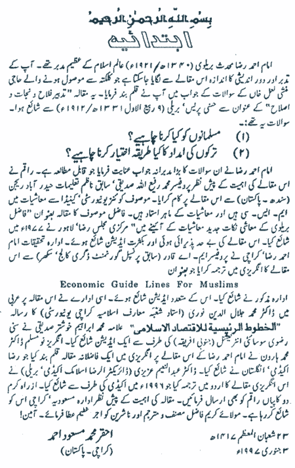Publications of Idara e-Mas'udia