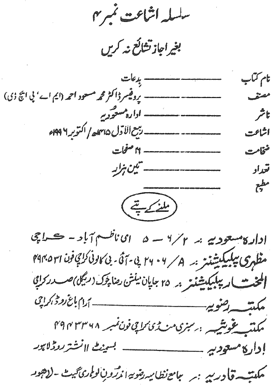 Publications of Idara e-Mas'udia