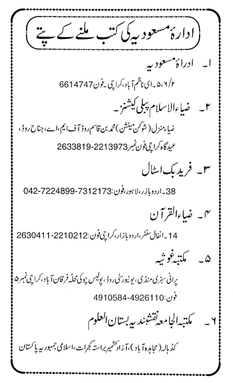 Publications of Idara e-Mas'udia