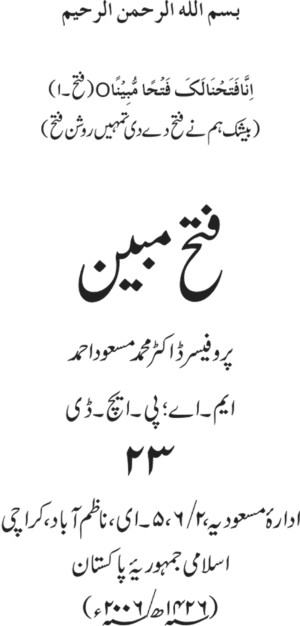 Publications of Idara e-Mas'udia