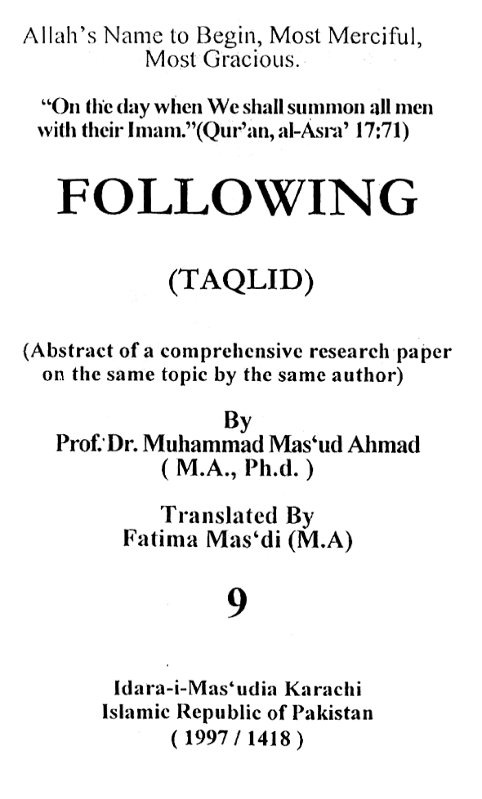 Publications of Idara e-Mas'udia