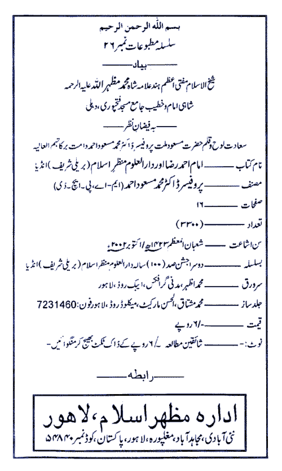 Publications of Idara e-Mas'udia