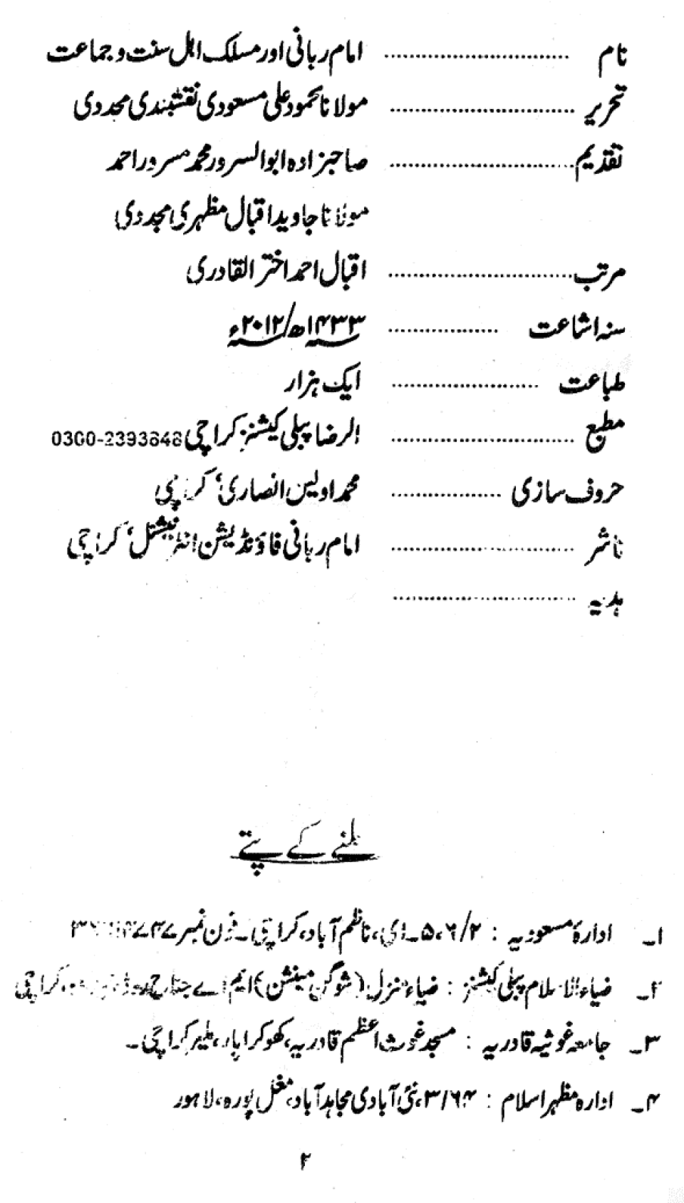 Publications of Idara e-Mas'udia