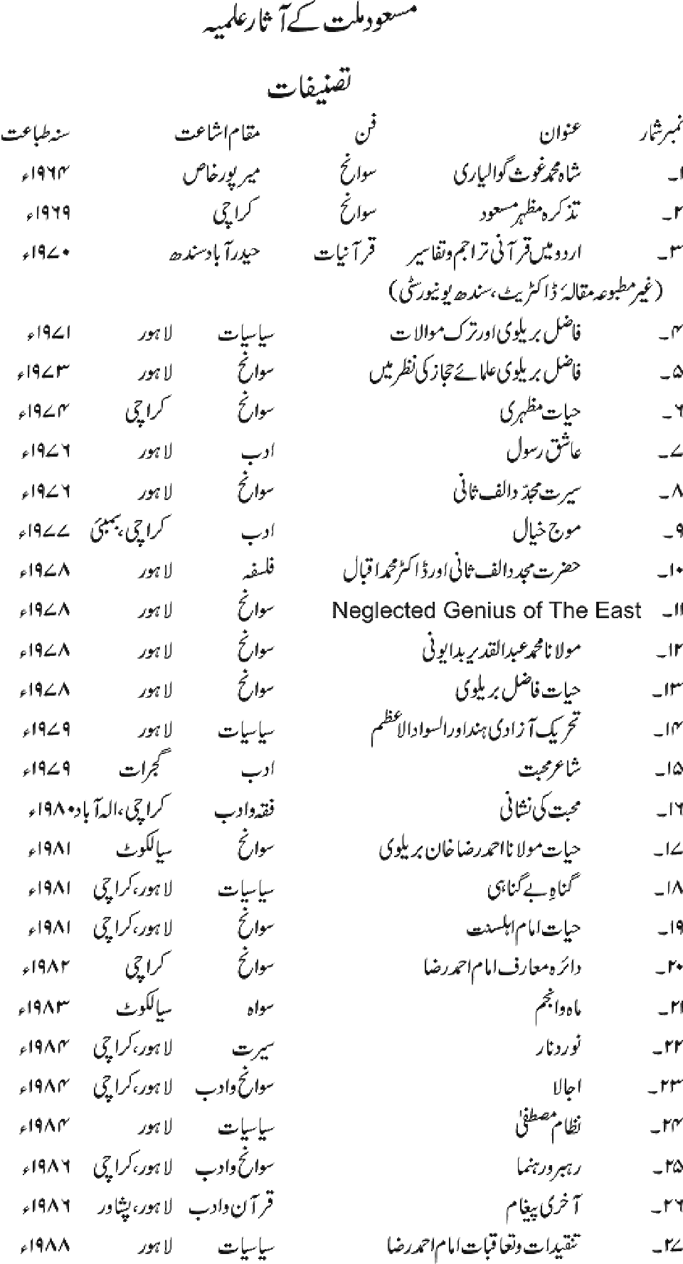Publications of Idara e-Mas'udia