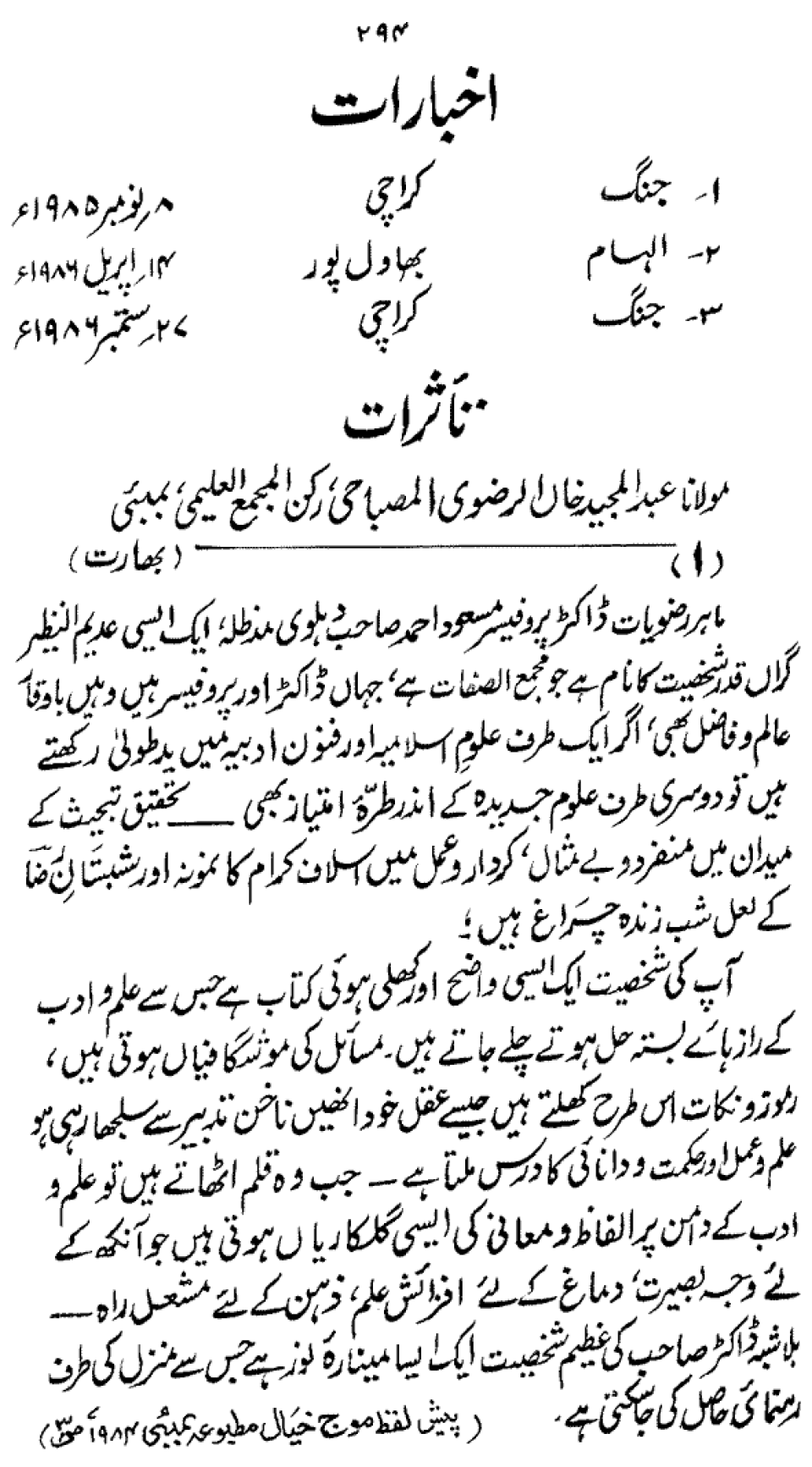 Publications of Idara e-Mas'udia