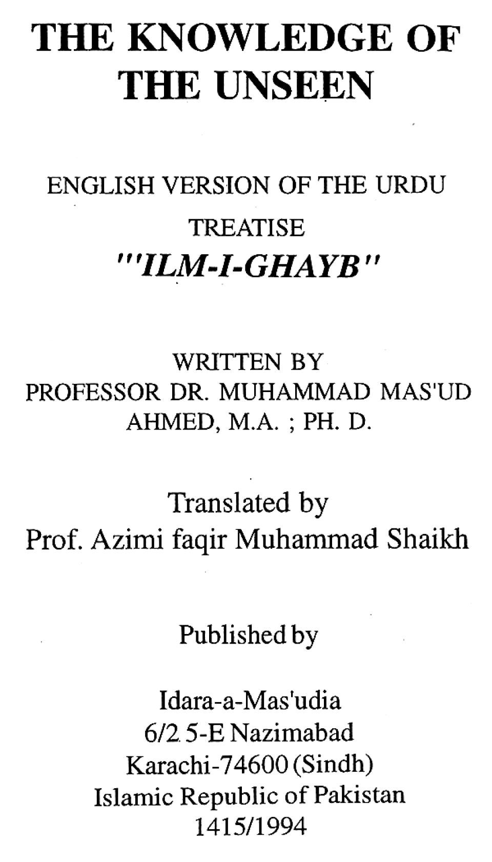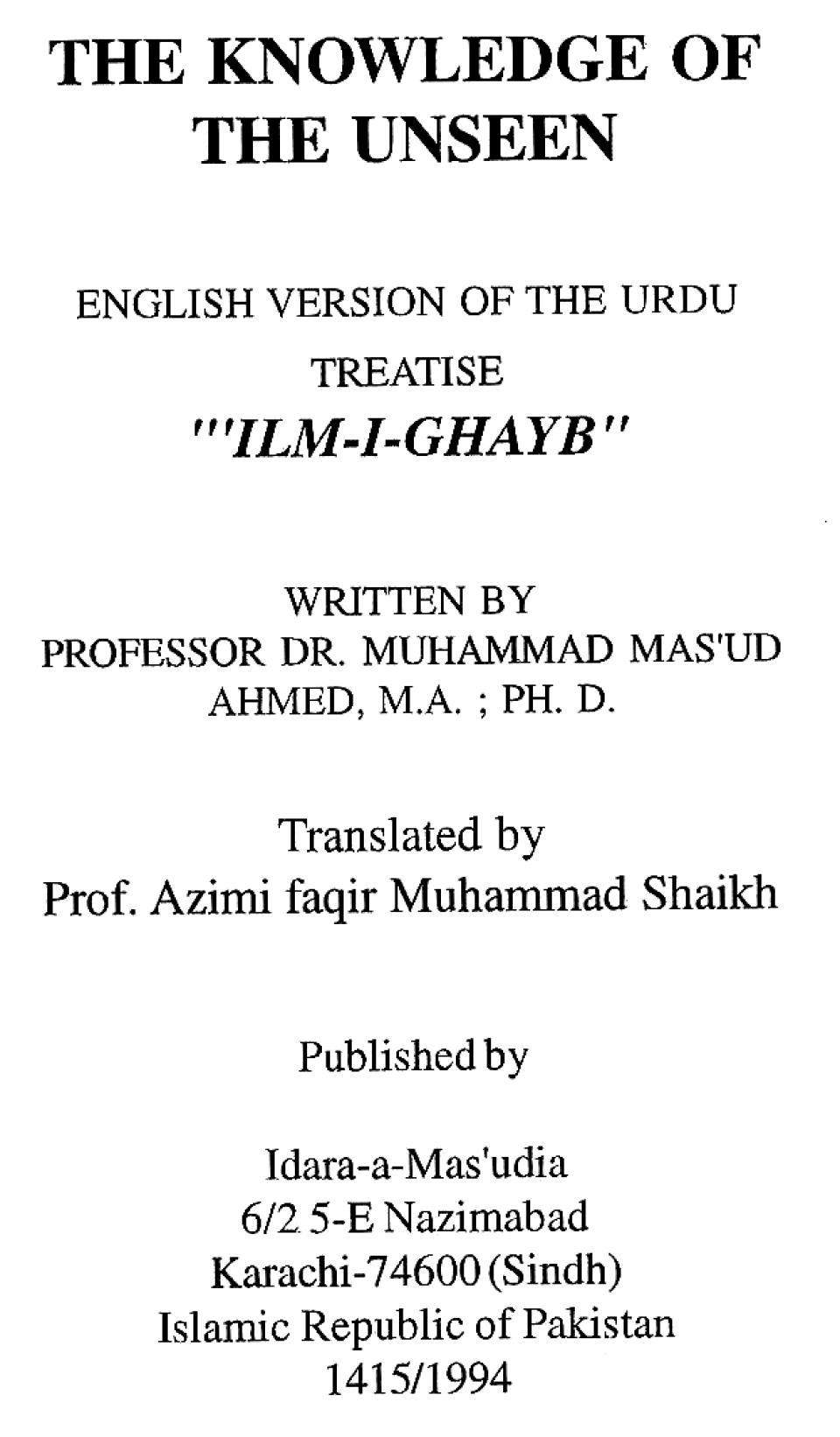 Publications of Idara e-Mas'udia