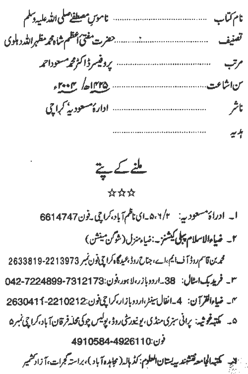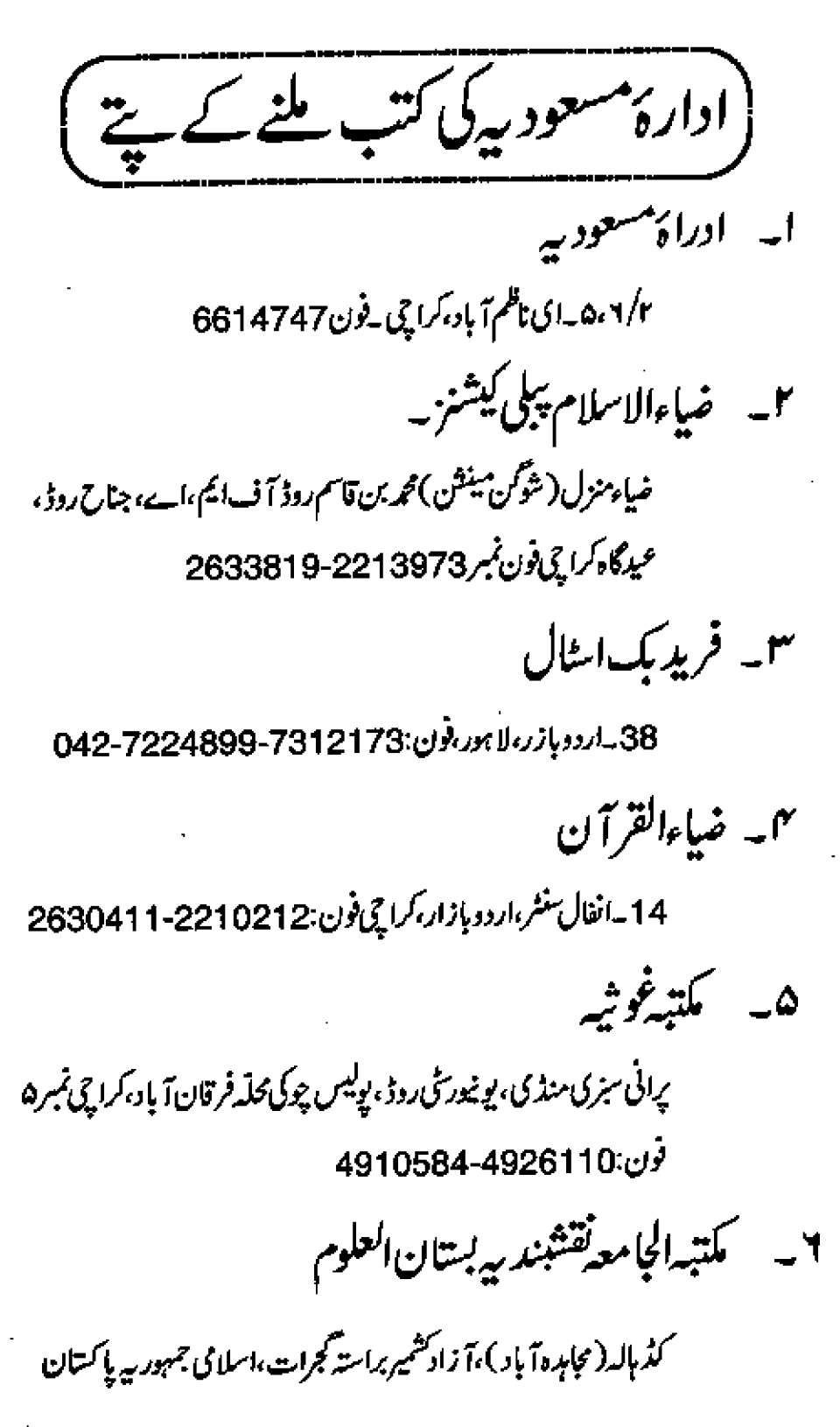 Publications of Idara e-Mas'udia