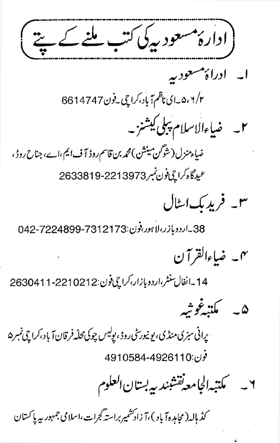 Publications of Idara e-Mas'udia