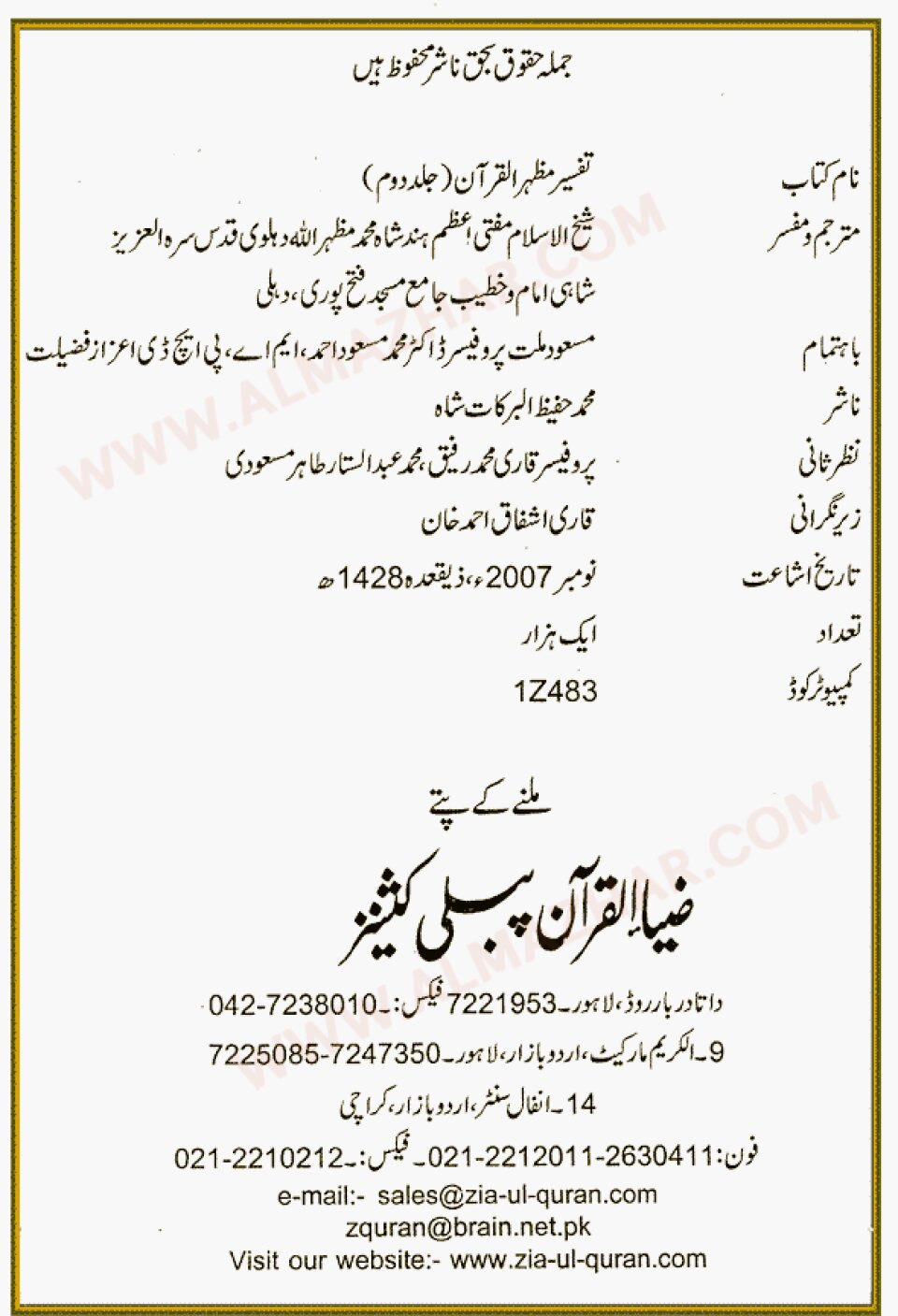 Tafseer Mazhar al-Quran Part 1