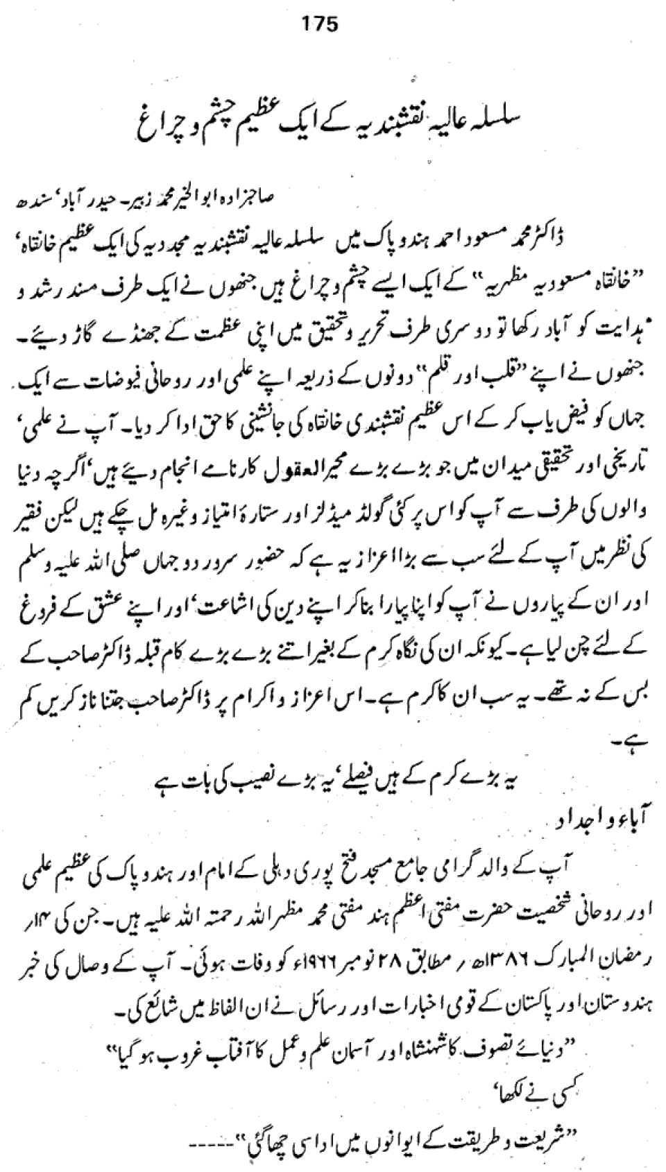 Mujaddid-i-Asar Hazrat-i-Mas‘udi-Millat R. A.