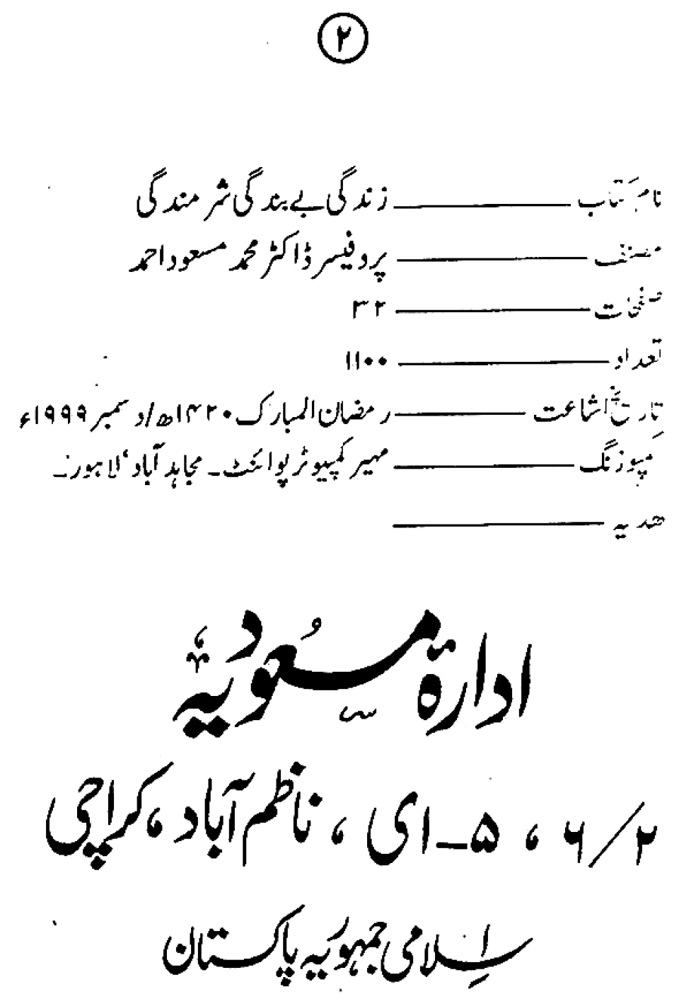 Publications of Idara e-Mas'udia