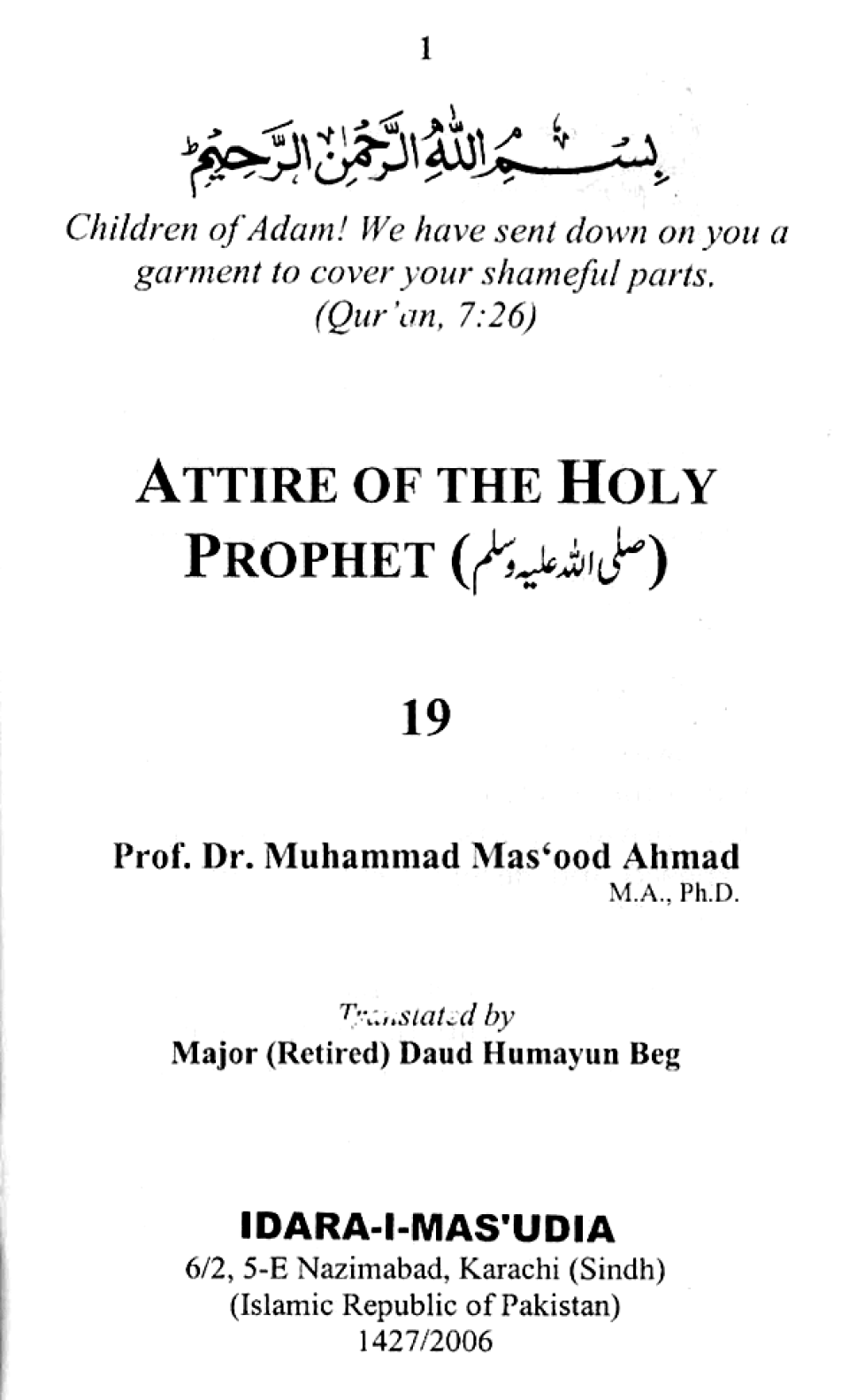 Attire of the Holy Prophet