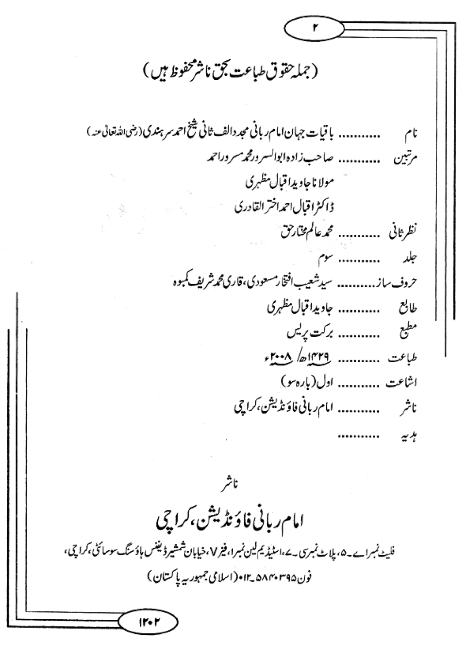 Baqiyaat Jahan-e-Imam-i-Rabbani Mujaddid Alif Thani Part 14