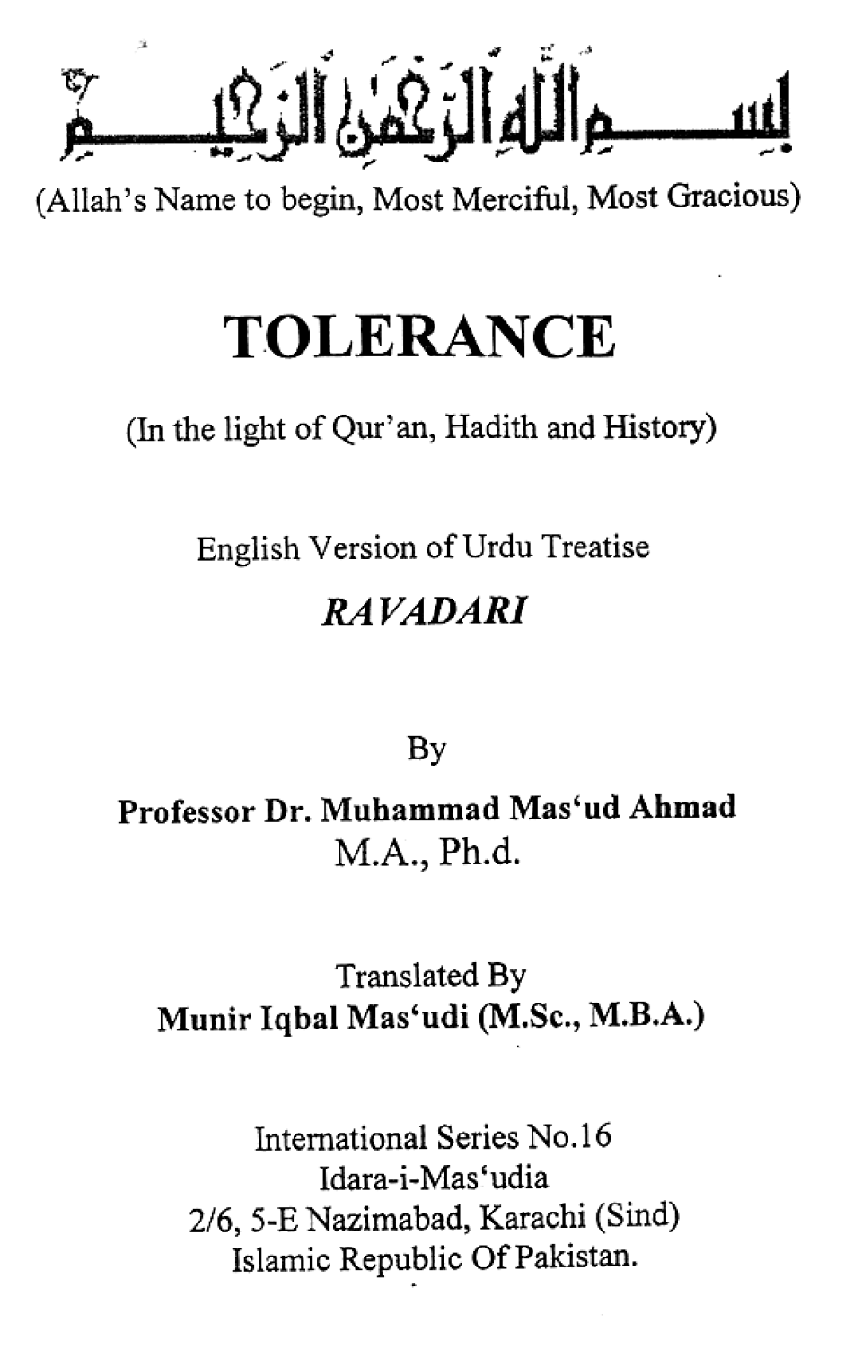 Publications of Idara e-Mas'udia