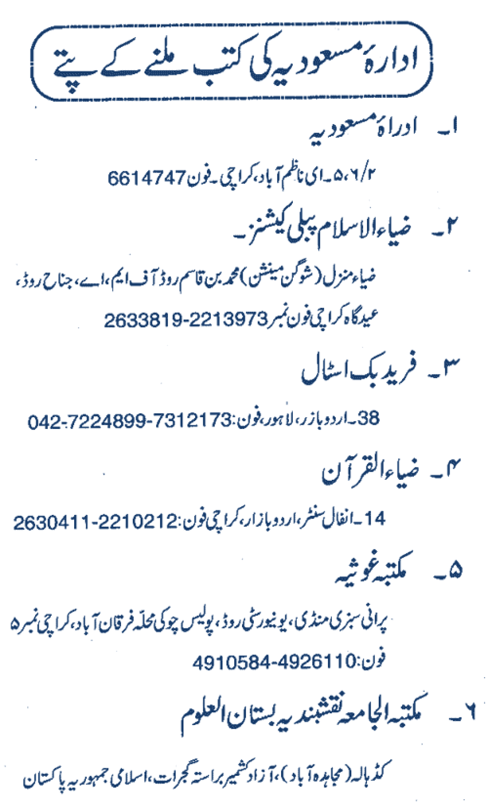 Publications of Idara e-Mas'udia