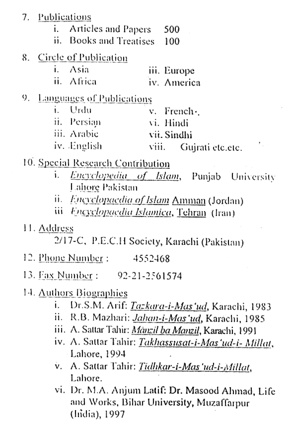Publications of Idara e-Mas'udia
