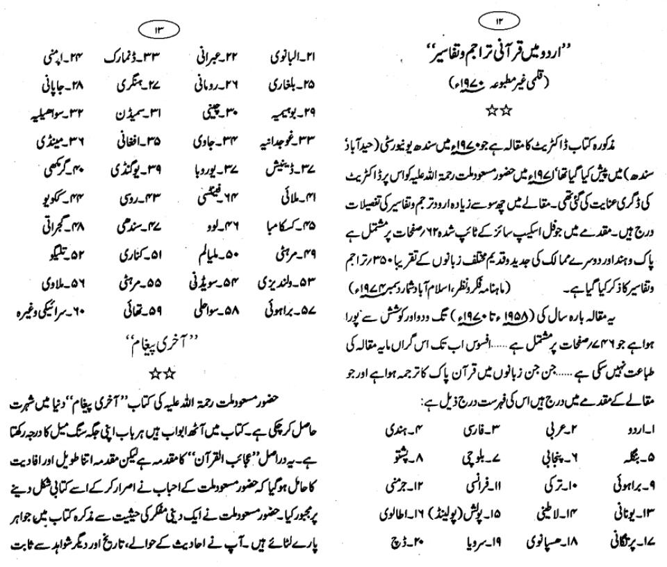 Publications of Idara e-Mas'udia