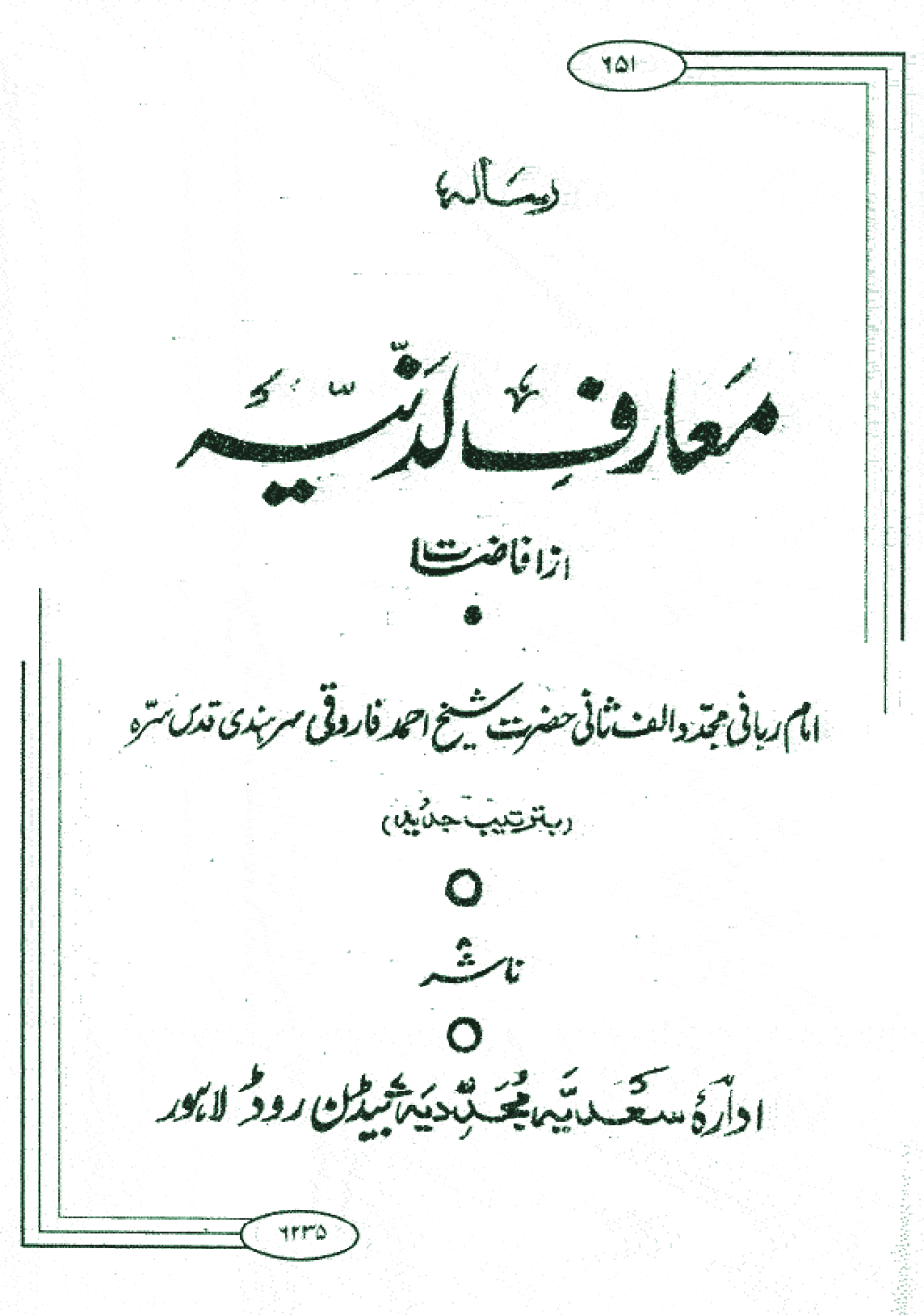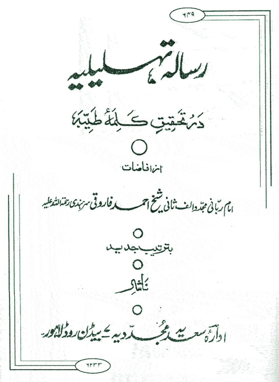 Shaikh Ahmad Sirhandi Imam-I-Rabbani Mujaddid Alif Thani