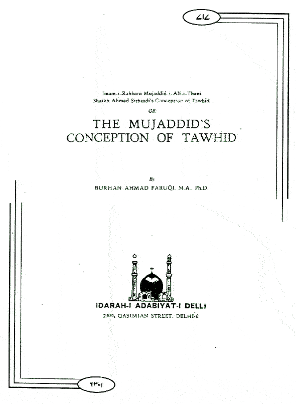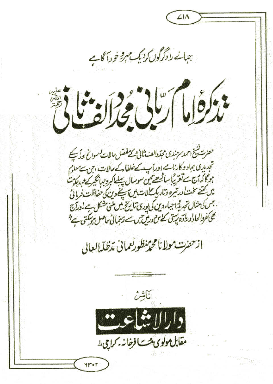 Shaikh Ahmad Sirhandi Imam-I-Rabbani Mujaddid Alif Thani