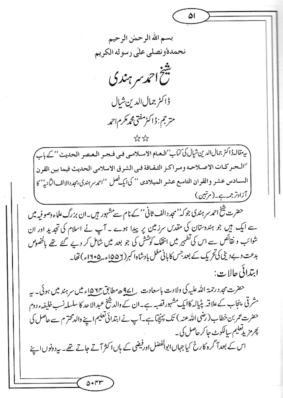 Shaikh Ahmad Sirhandi Imam-I-Rabbani Mujaddid Alif Thani