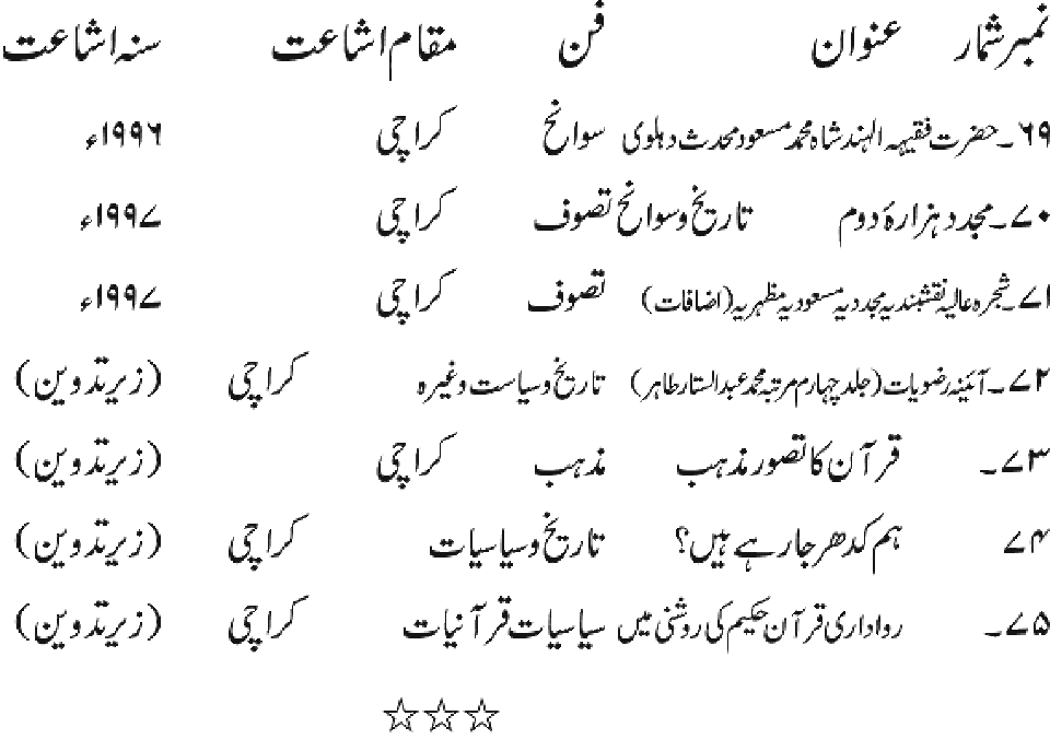 Publications of Idara e-Mas'udia