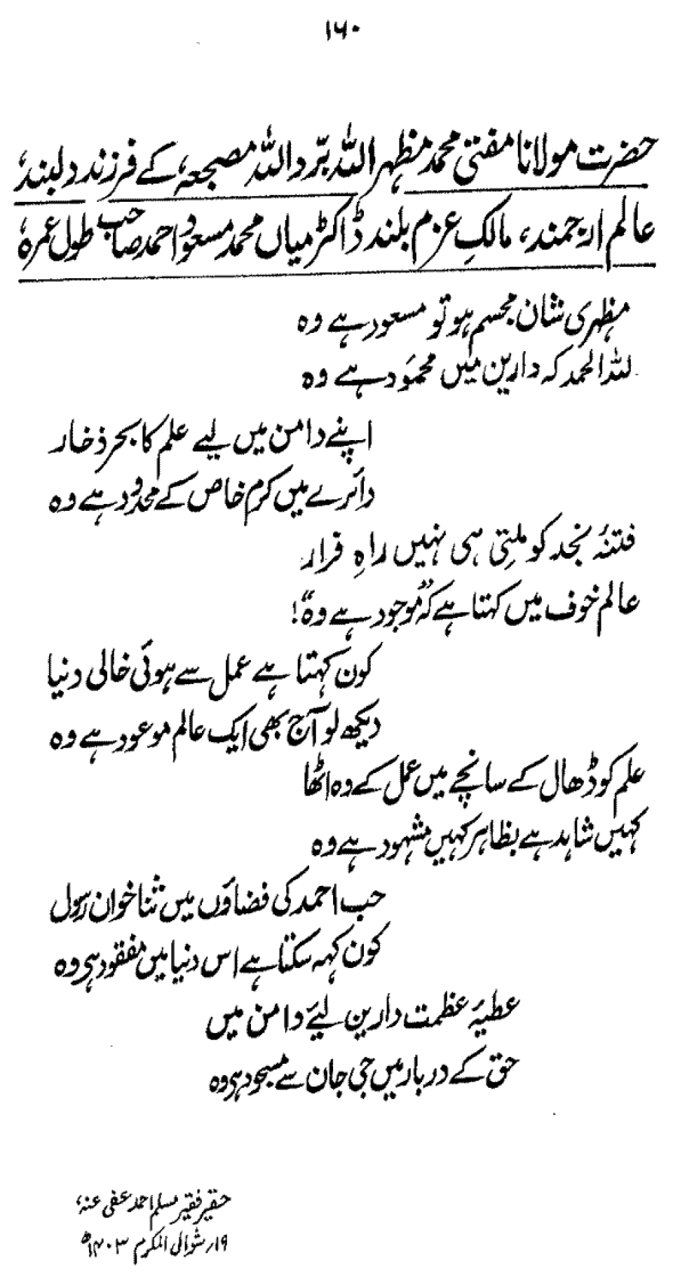 Mujaddid-i-Asar Hazrat-i-Mas‘udi-Millat R. A.