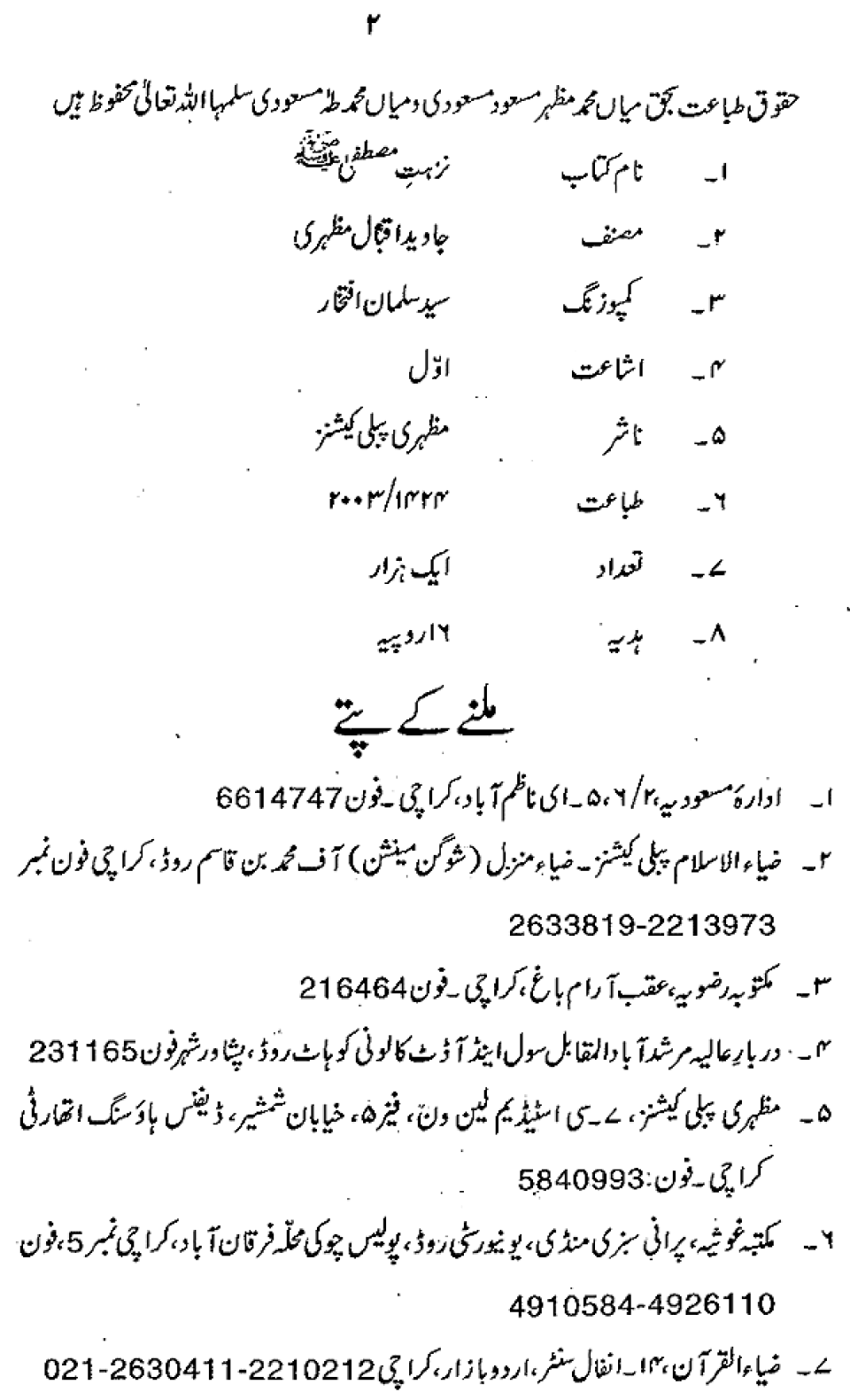 Publications of Idara e-Mas'udia