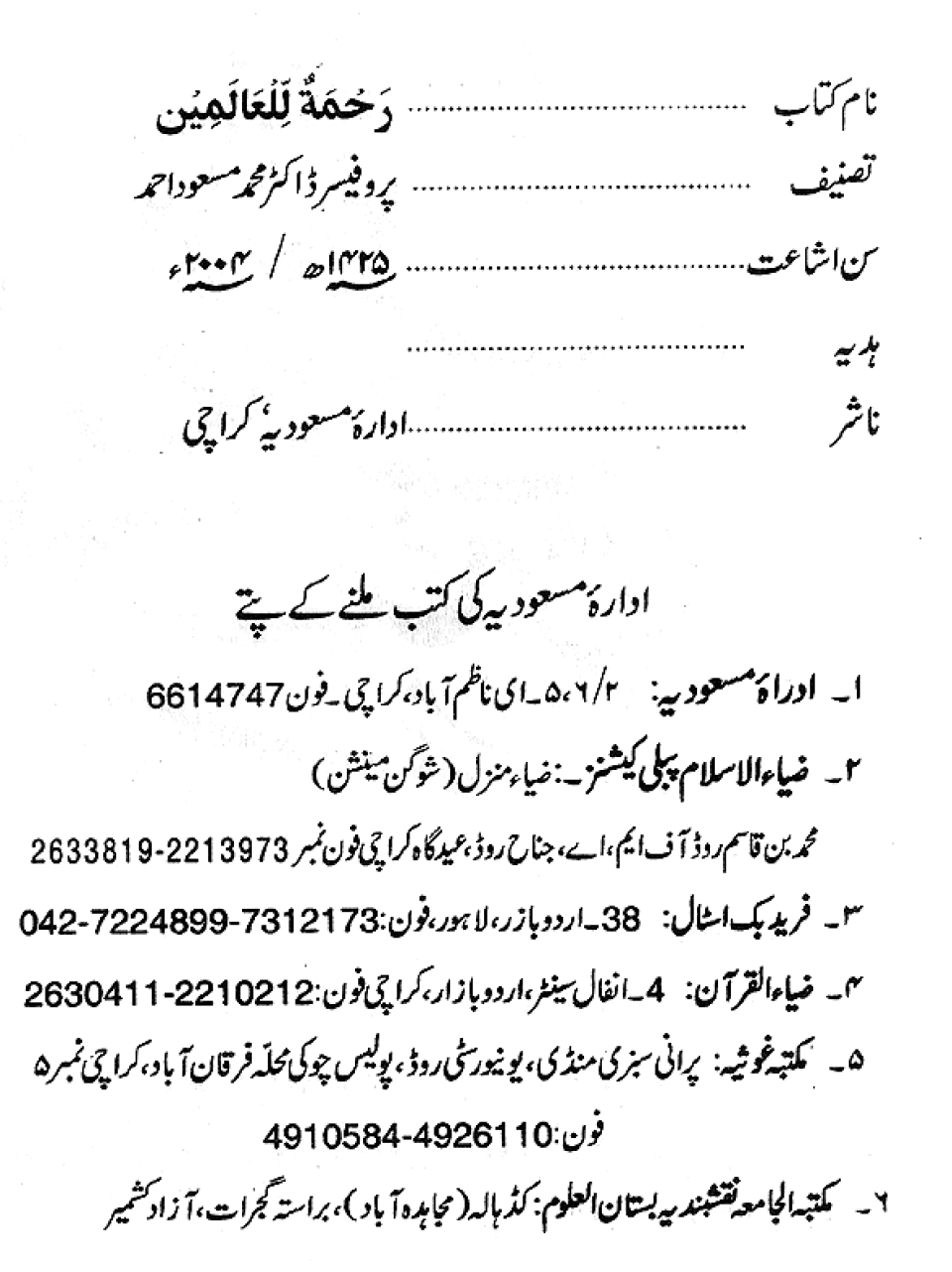 Publications of Idara e-Mas'udia