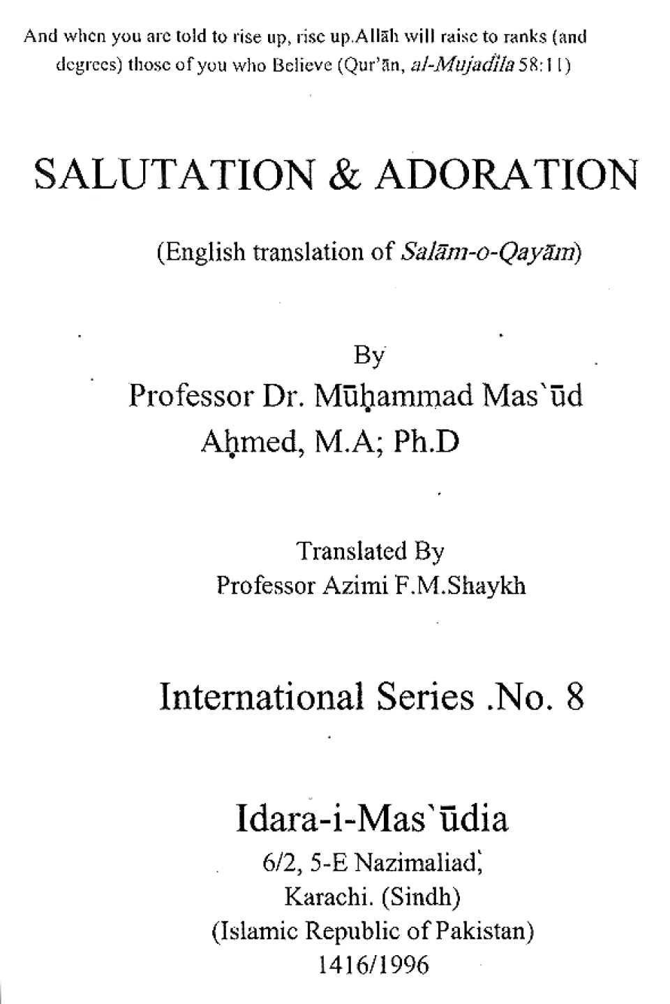 Publications of Idara e-Mas'udia