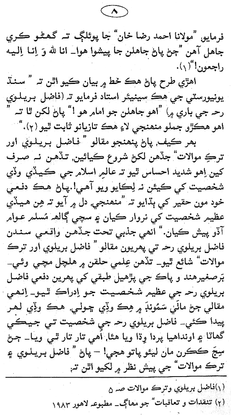 Sindhi: A'la Hazrat Barielwi Ji Zindagi