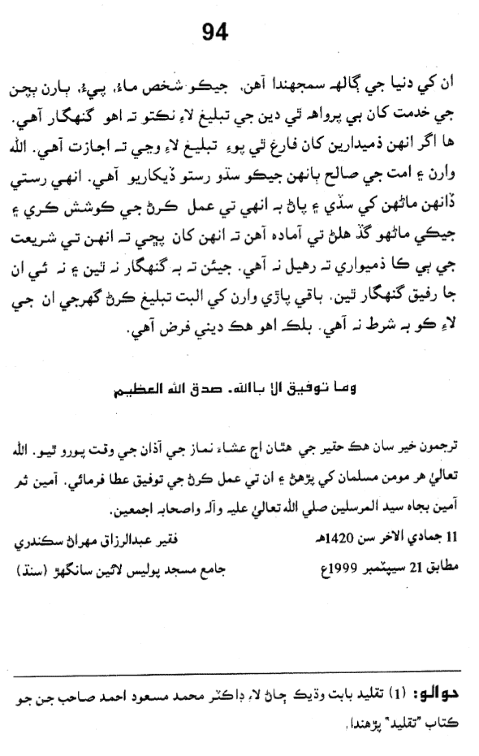 Sindhi: Mazhar Al"aqayad