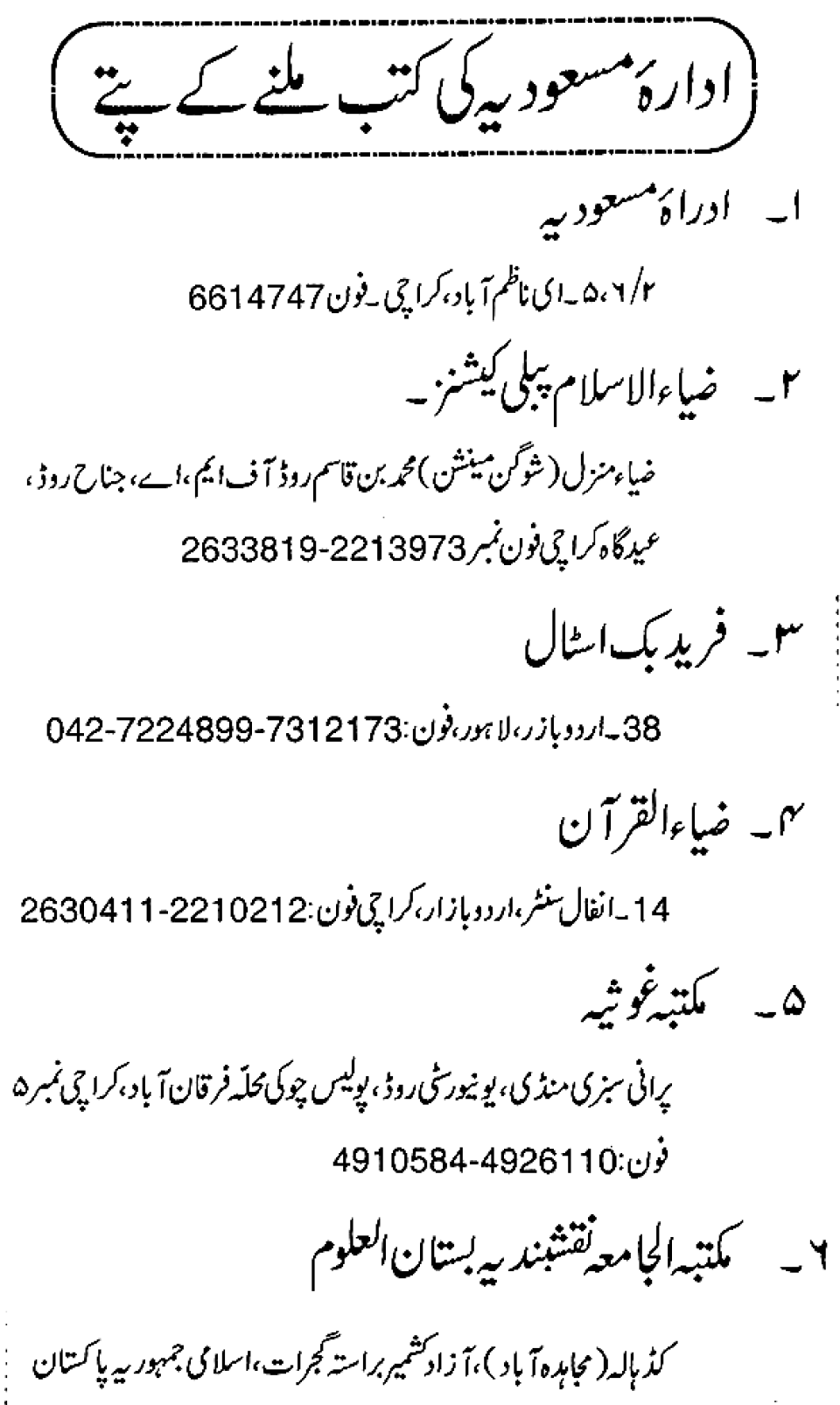 Publications of Idara e-Mas'udia